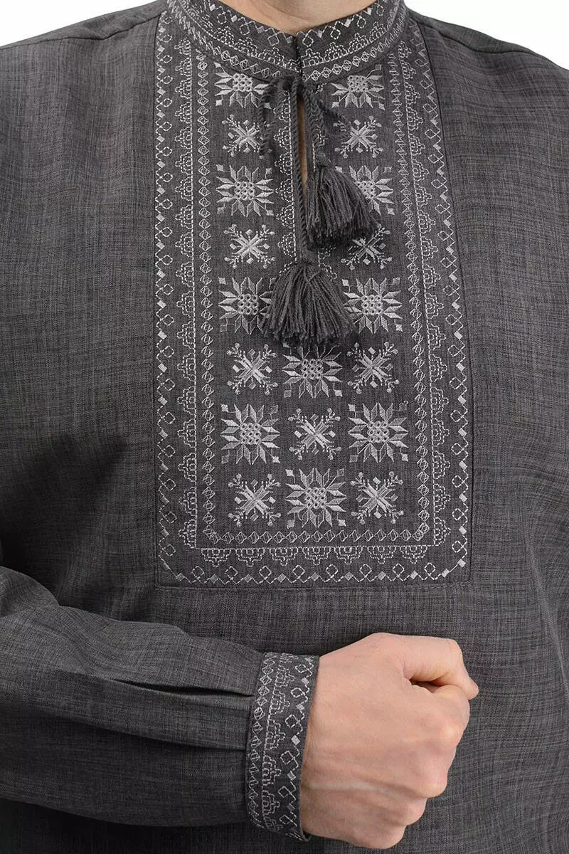 Чоловіча сорочка-вишиванка Орнамент (темно-сіра)