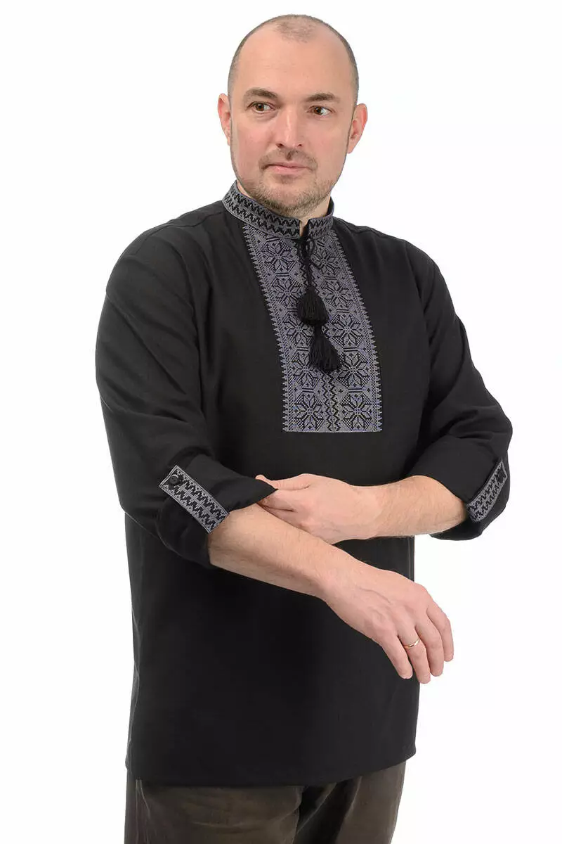 Представлена модель сорочки-вишиванки відрізняється стриманою вишивкою і модним сучасним забарвленням.