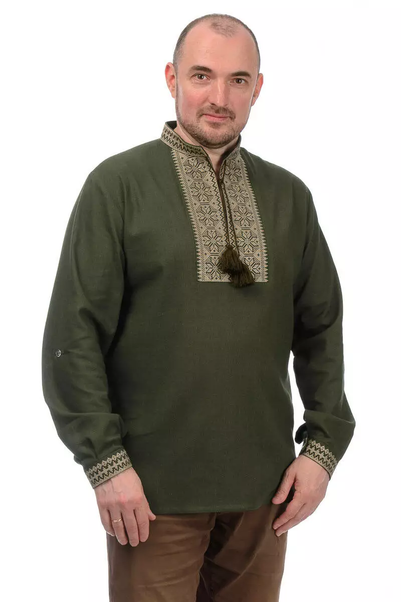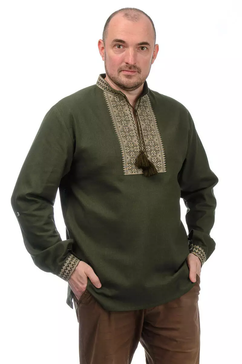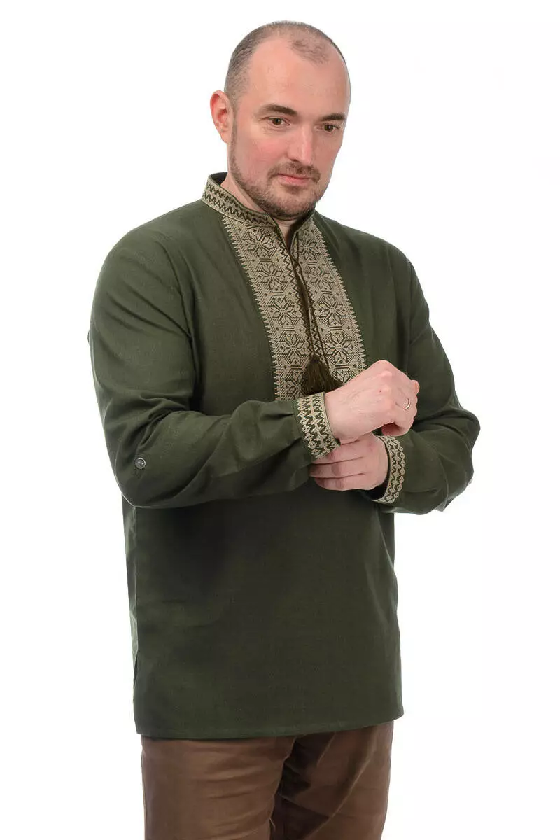 Чоловіча вишиванка з льна Модерн (хакі)