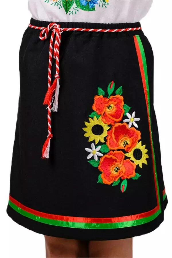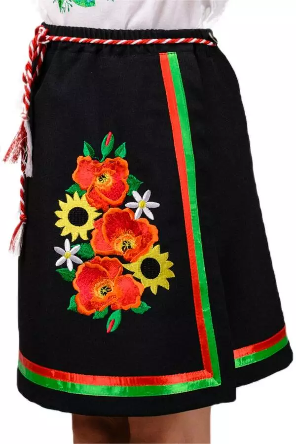Красива дитяча спідниця-вишиванка "Плахта" прикрашена яскравими атласними стрічками та натуральною вишивкою.