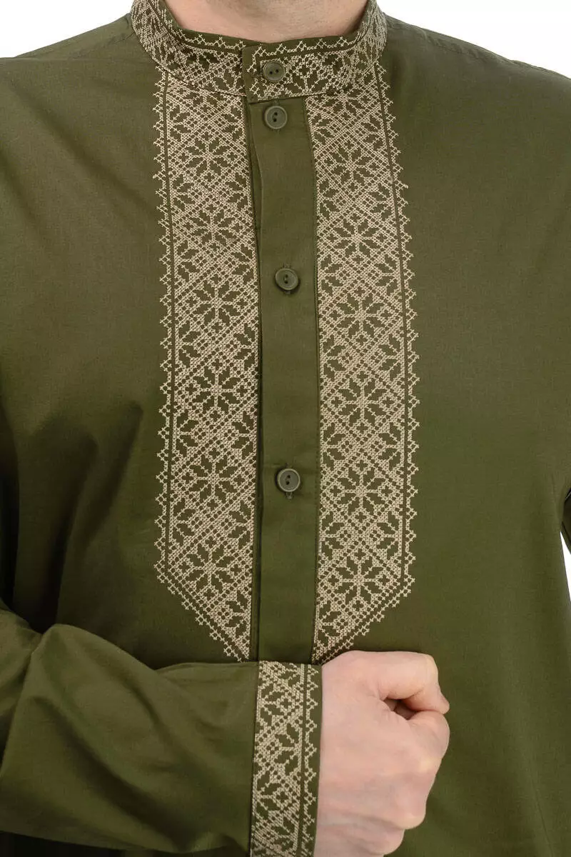 Котонова сорочка з вишивкою (хакі)