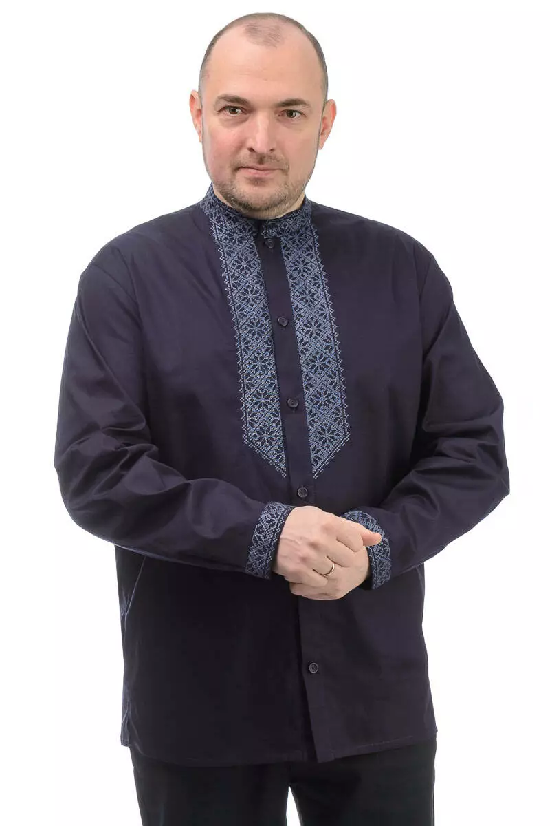 Котонова чоловіча сорочка-вишиванка зроблена з бавовняного матеріалу, має вишивку на грудях, комірі та манжетах.