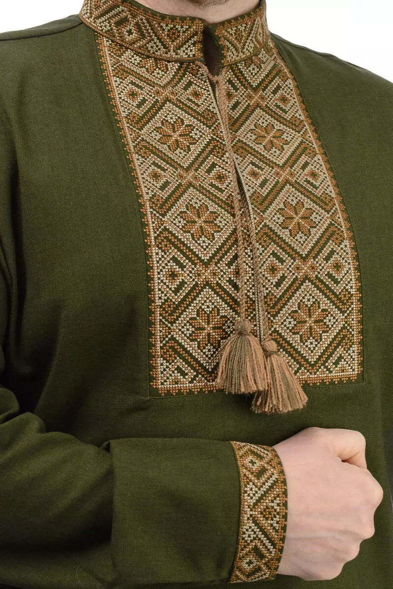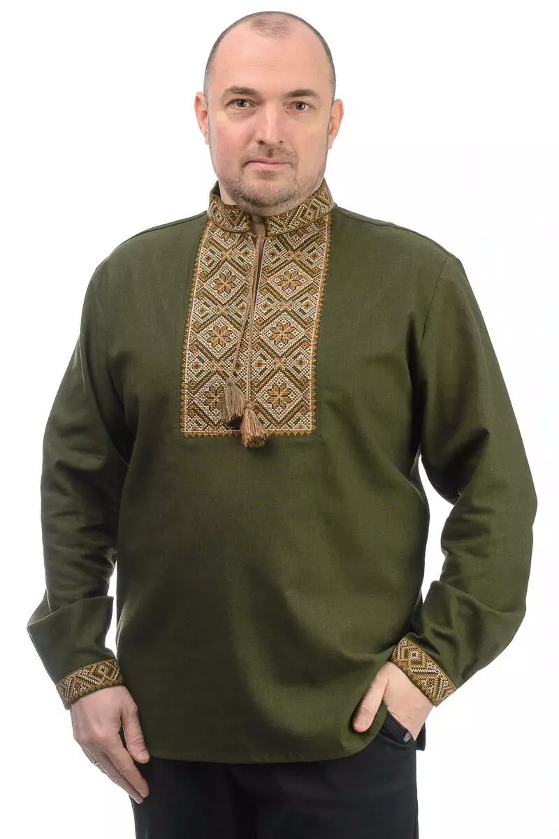 Лляна вишиванка Етно (хакі)