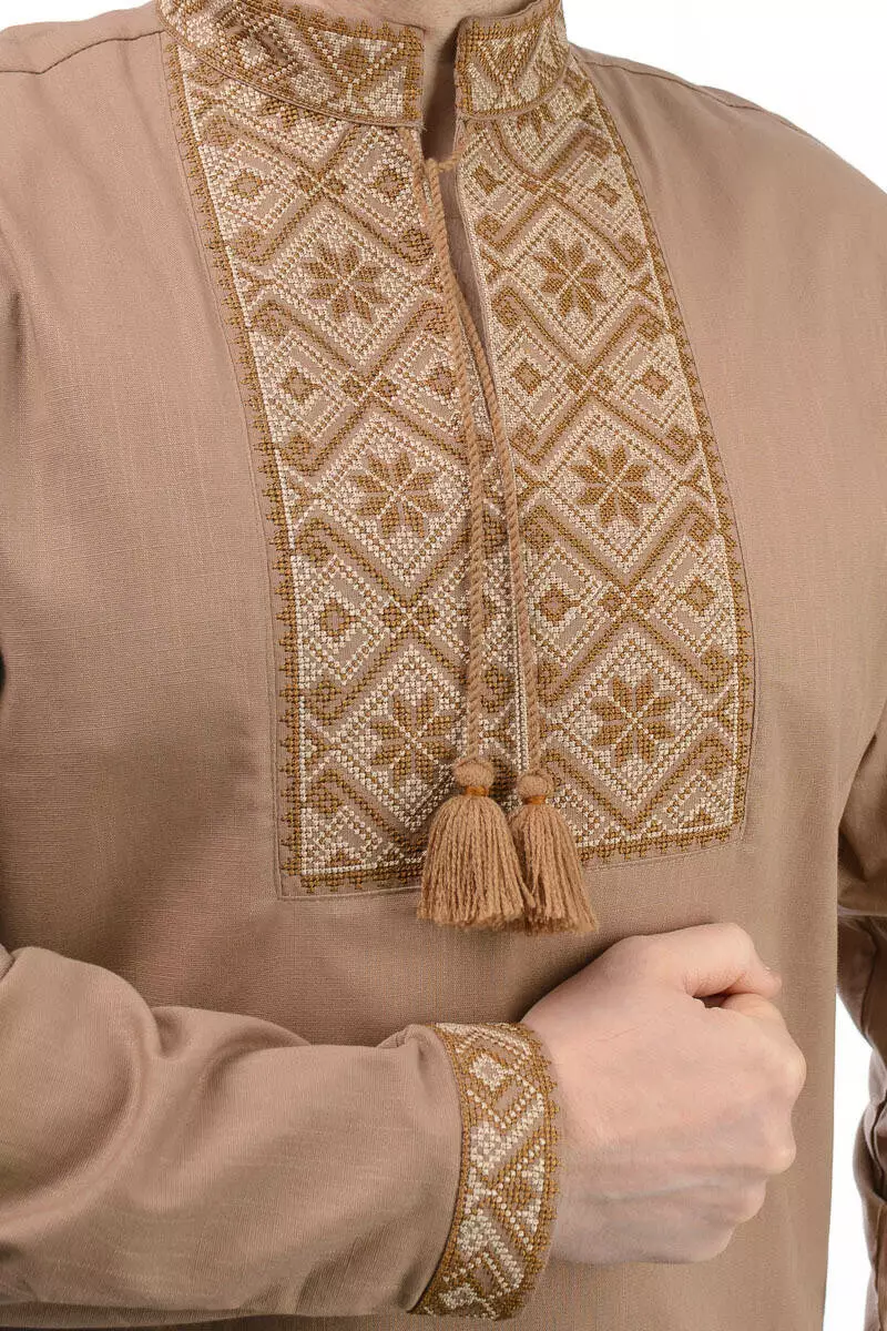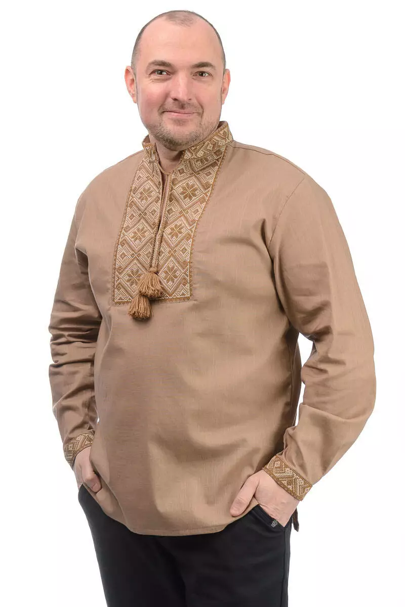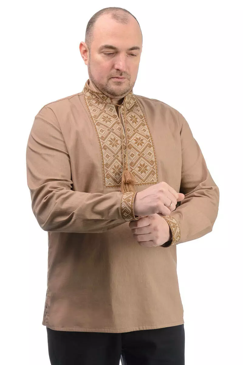 Чоловіча вишиванка в етно стилі - це одяг, що поєднує у собі традиційні елементи української вишивки з сучасними модними тенденціями. Виготовлена з лляного матеріалу і прикрашена машинною вишивкою, імітуючи стиль традиційної української вишивки.