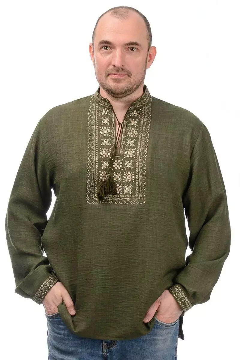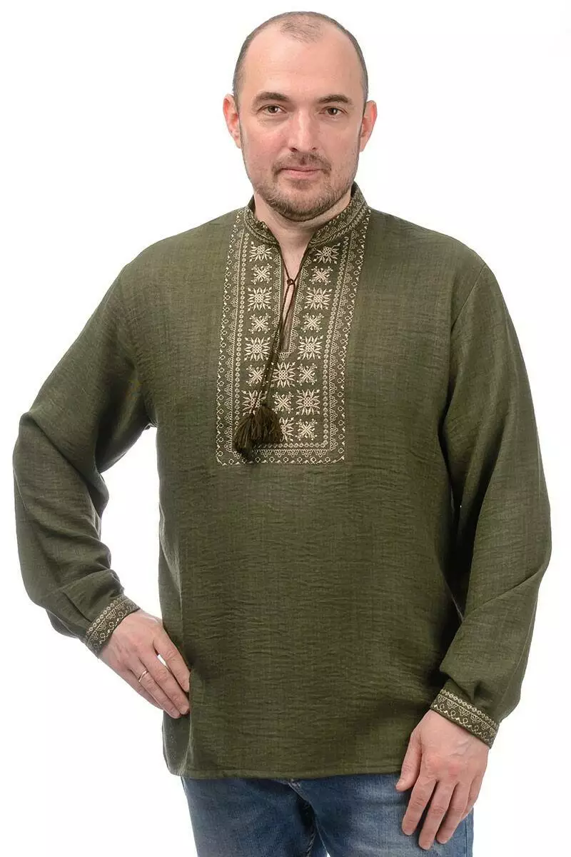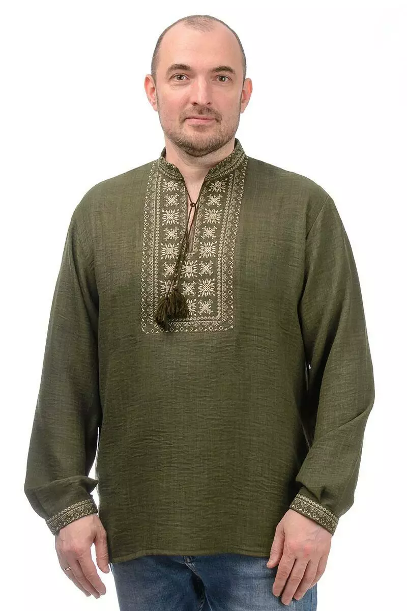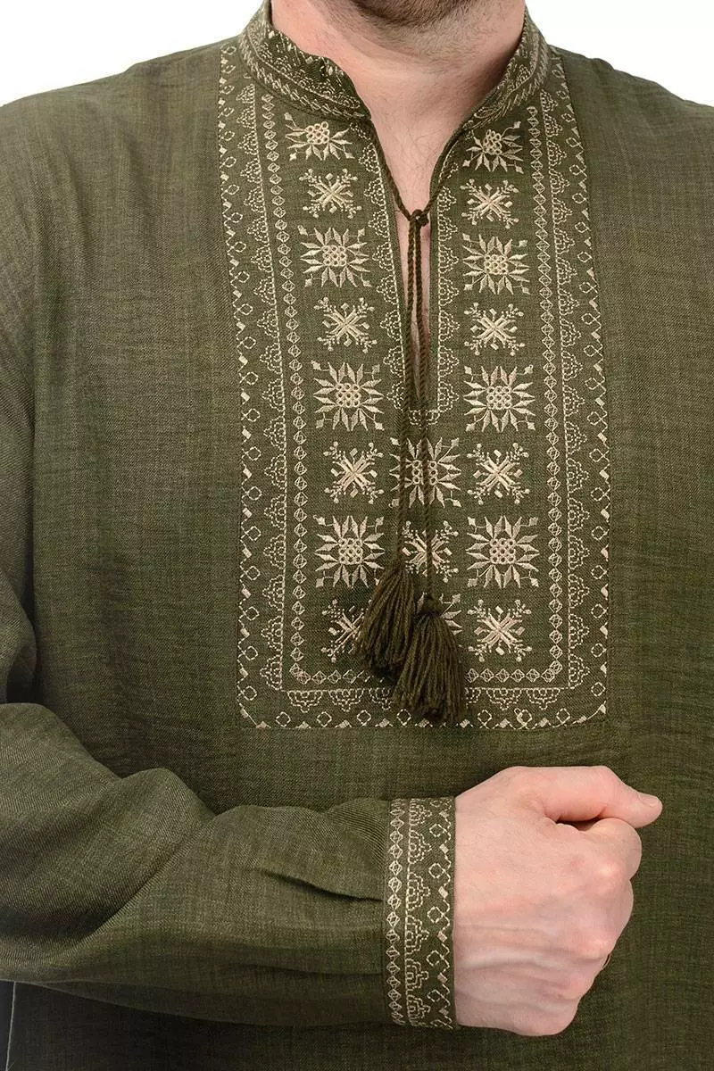 Сорочка-вишиванка Орнамент з матеріалу льон-штрих (хакі)