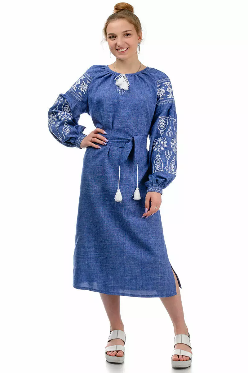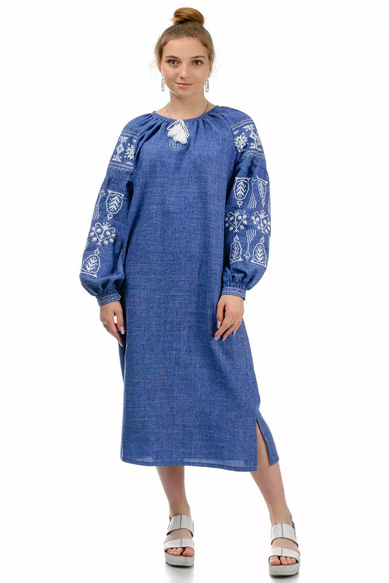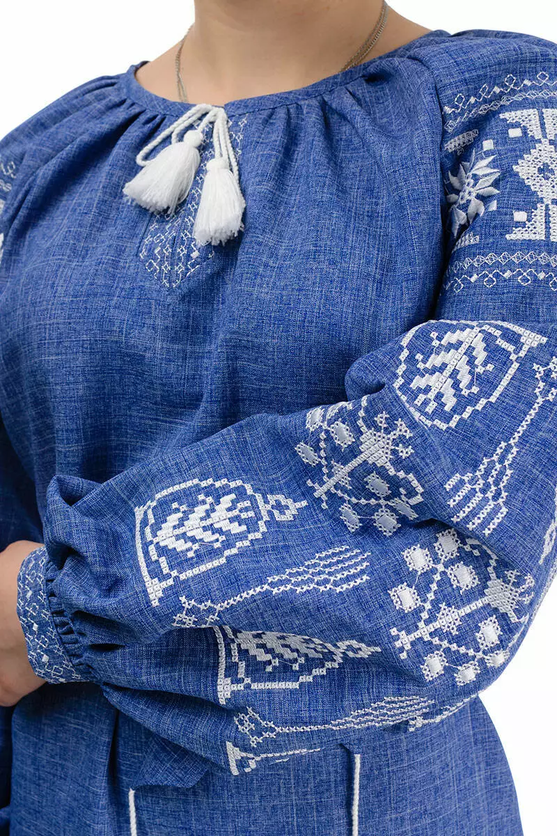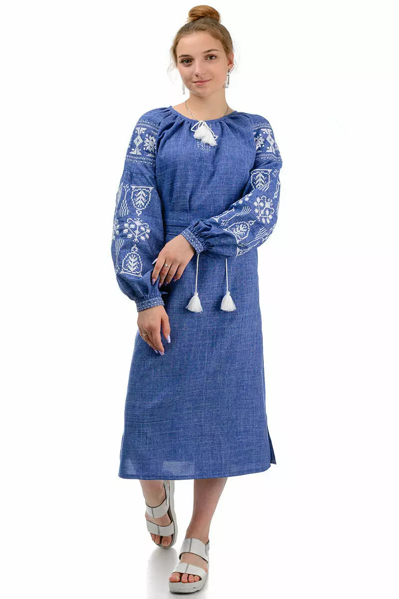 Стильна сукня-вишиванка "Купава" (джинсовий)