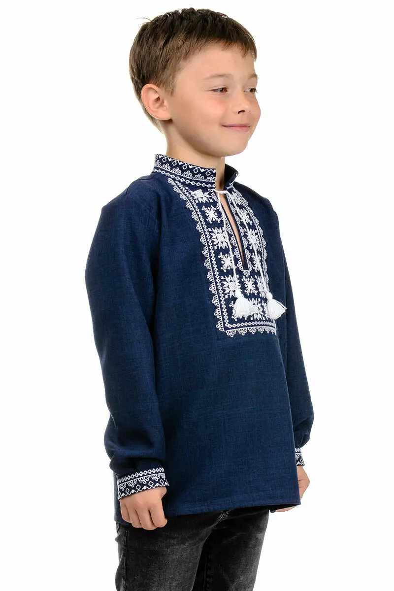 Сучасна вишиванка для хлопчика Орнамент (темно-синій)
