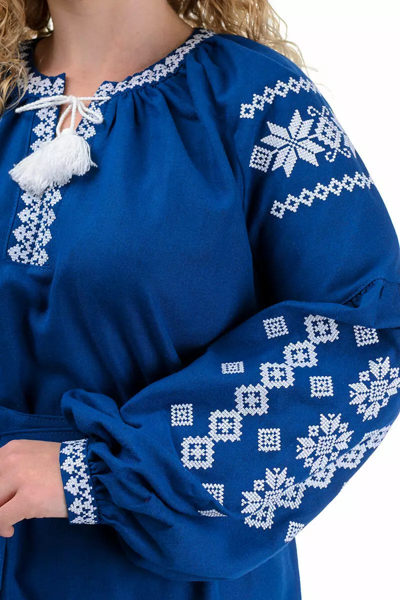 Сукню чудово доповнює поясок з білими китицями. За рахунок пояса можно підкреслити талію, а бічні розрізи допоможуть придати Вашому образу неймовірної елегантності.