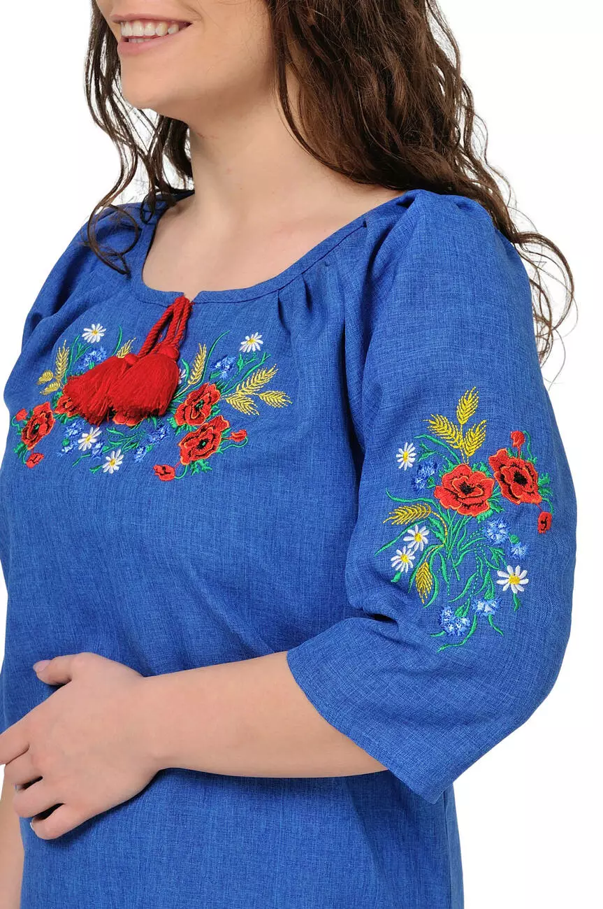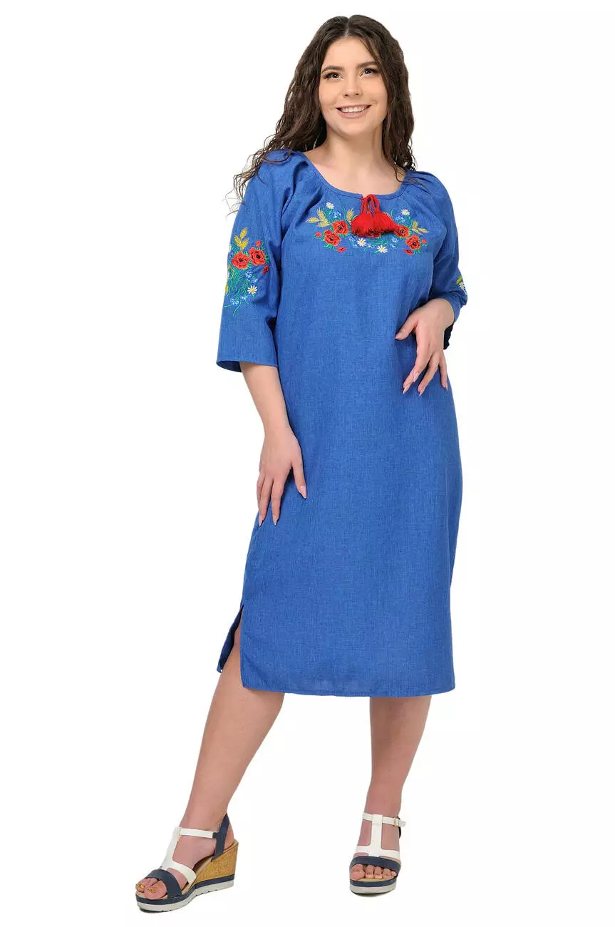 Сукня-вишиванка вироблена з якісних матеріалів. Тканина - льон-габардин щільна та приємна на дотик. Ошатні візерунки на рукавах і грудях вишиті машинним способом. Важливо, що навіть після багаторазового прання тканина і вишивка зберігають свої початкові кольори.