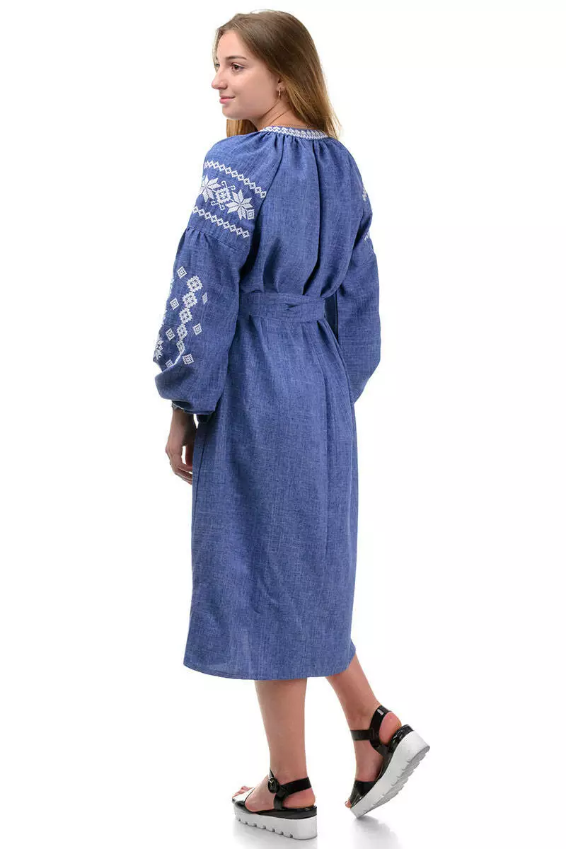 Сукня-вишиванка вироблена з якісних матеріалів. Тканина - льон-габардин щільна та приємна на дотик. Ошатні візерунки на рукавах і грудях вишиті машинним способом. Важливо, що навіть після багаторазового прання тканина і вишивка зберігають свої початкові кольори.