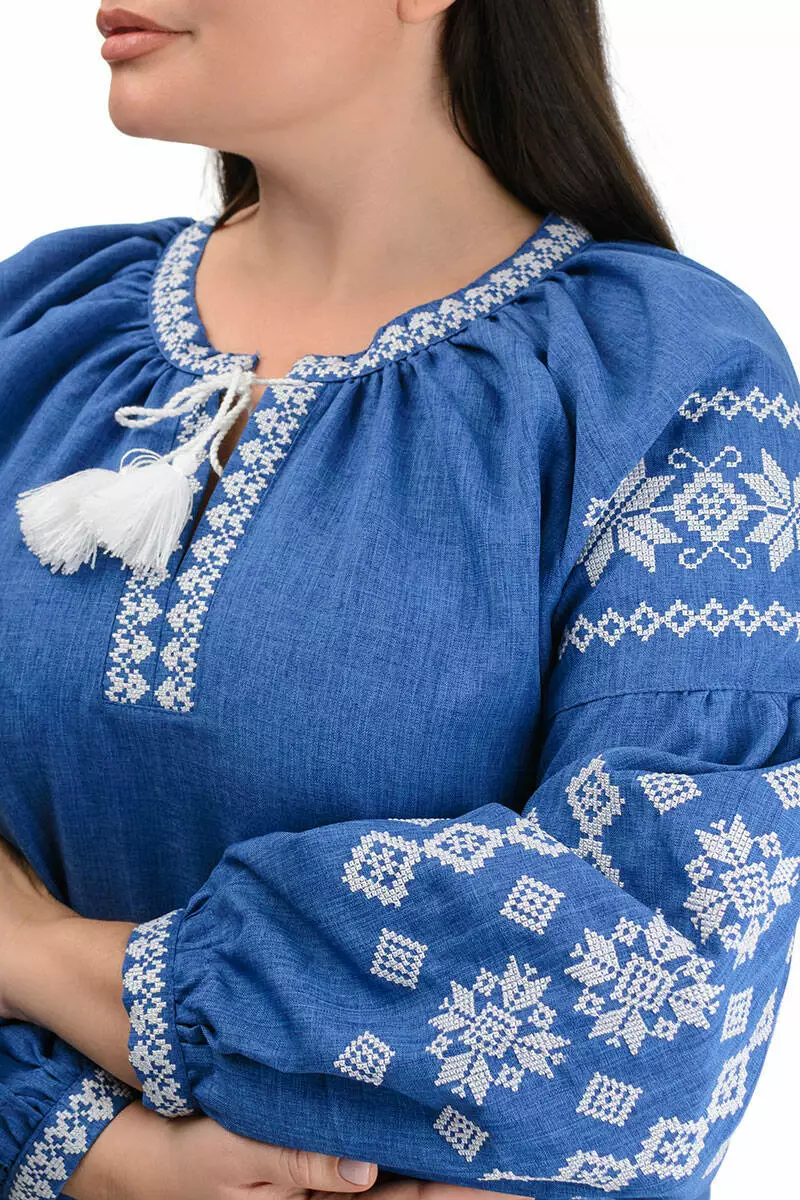 Сукня-вишиванка вироблена з якісних матеріалів. Тканина - льон-габардин щільна та приємна на дотик. Ошатні візерунки на рукавах і грудях вишиті машинним способом. Важливо, що навіть після багаторазового прання тканина і вишивка зберігають свої початкові кольори.