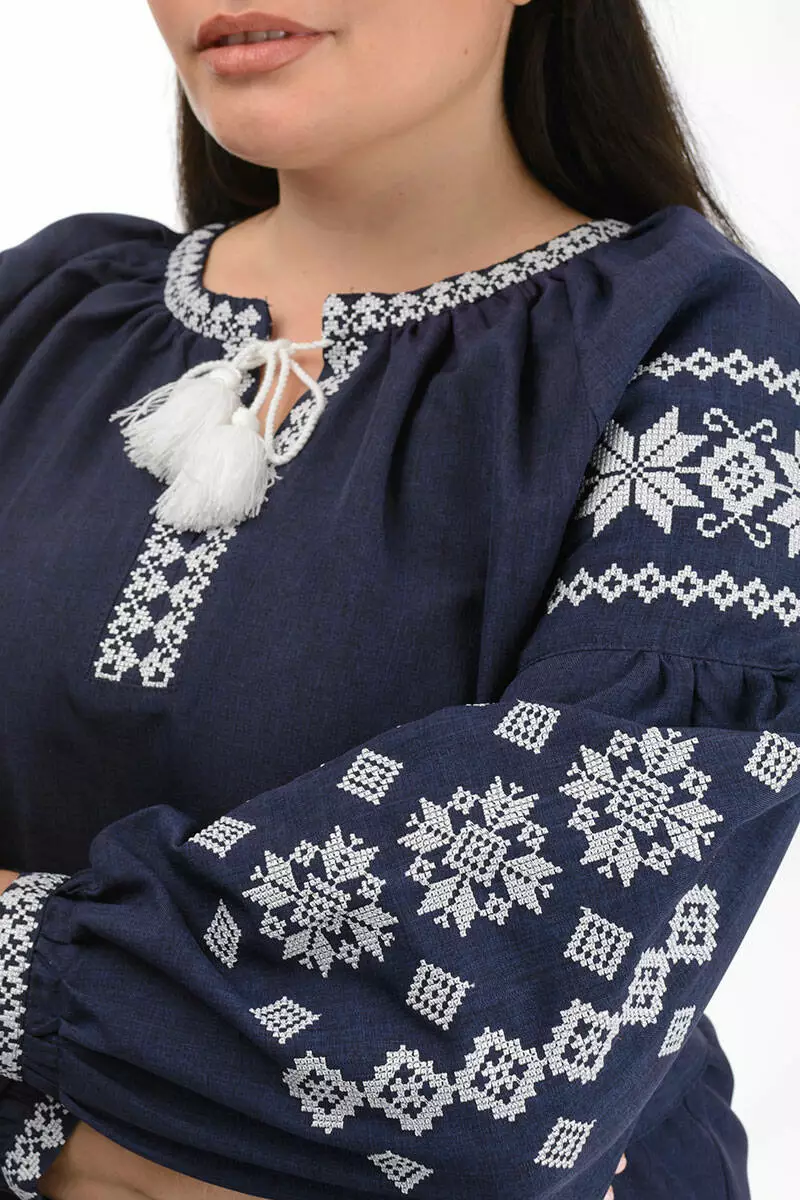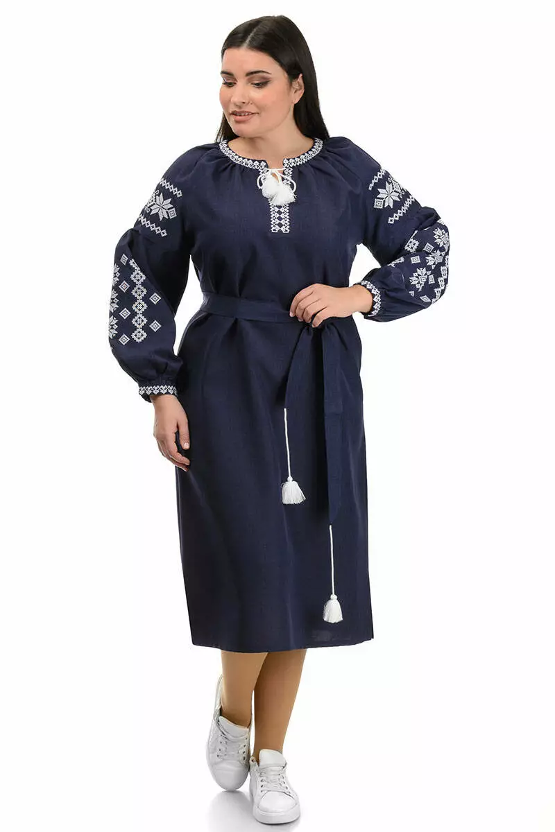 Сукня-вишиванка вироблена з якісних матеріалів. Тканина - льон-габардин щільна та приємна на дотик. Ошатні візерунки на рукавах і грудях вишиті машинним способом. Важливо, що навіть після багаторазового прання тканина і вишивка зберігають свої початкові кольори.