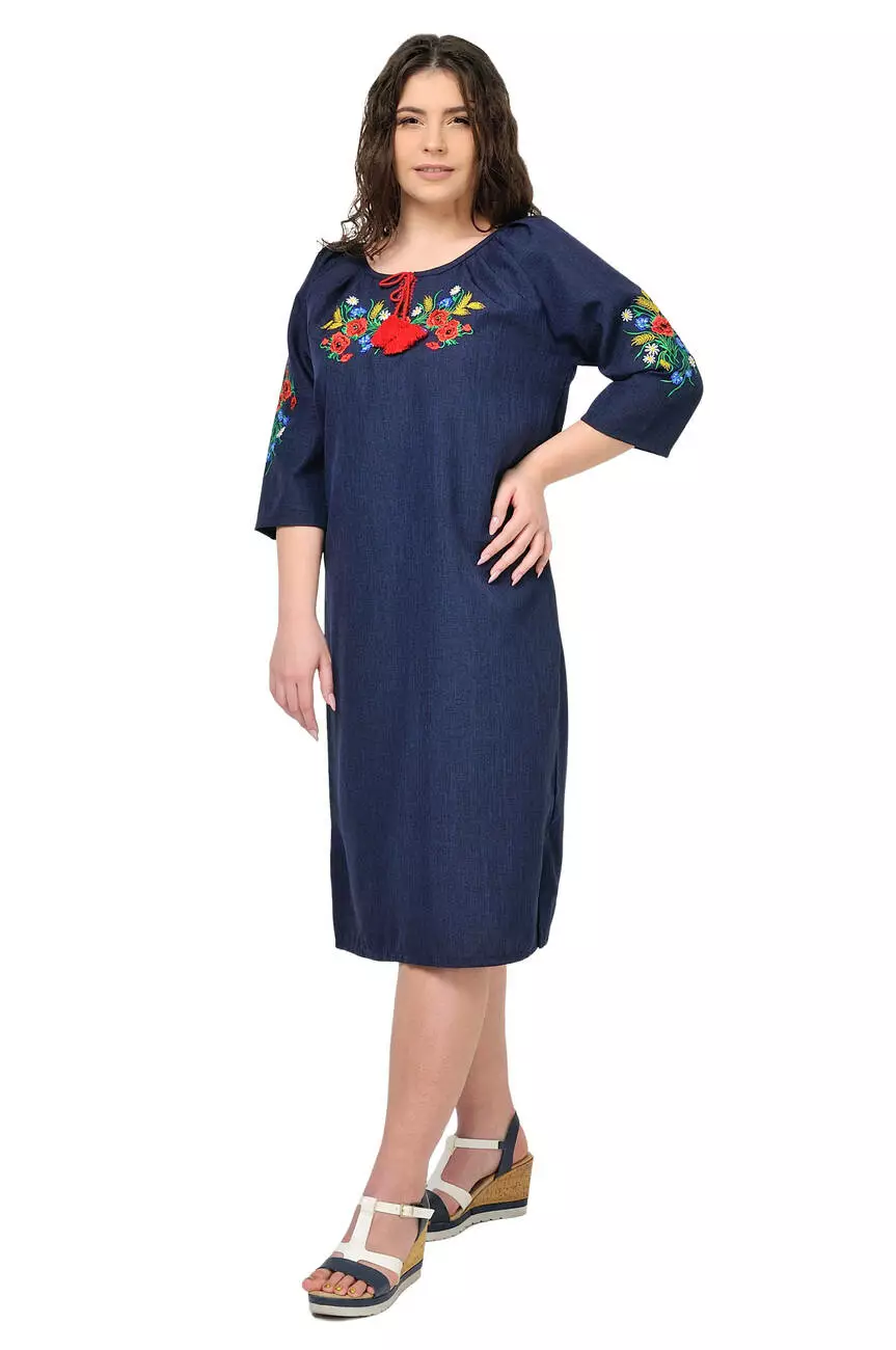 Сукня з яскравою вишивкою Маки (темно-синій)