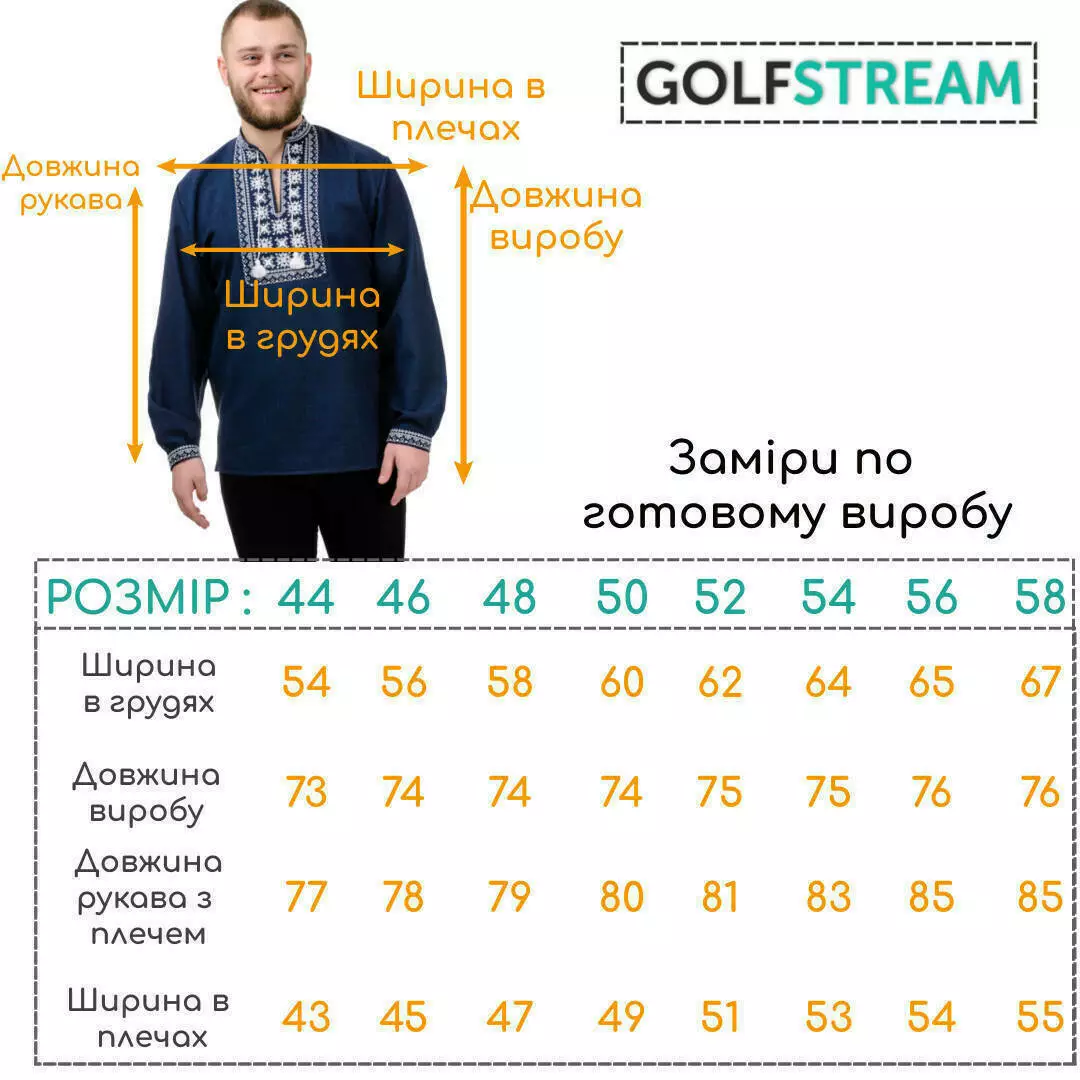 Головною окрасою й одночасно чарівною відмінністю сорочки є вишиті геометричні орнаменти. Білий візерунок довершує елегантний образ і робить виріб ще більш оригінальним. Крій сорочки вільний, рукава на манжетах і застібаються на ґудзик.