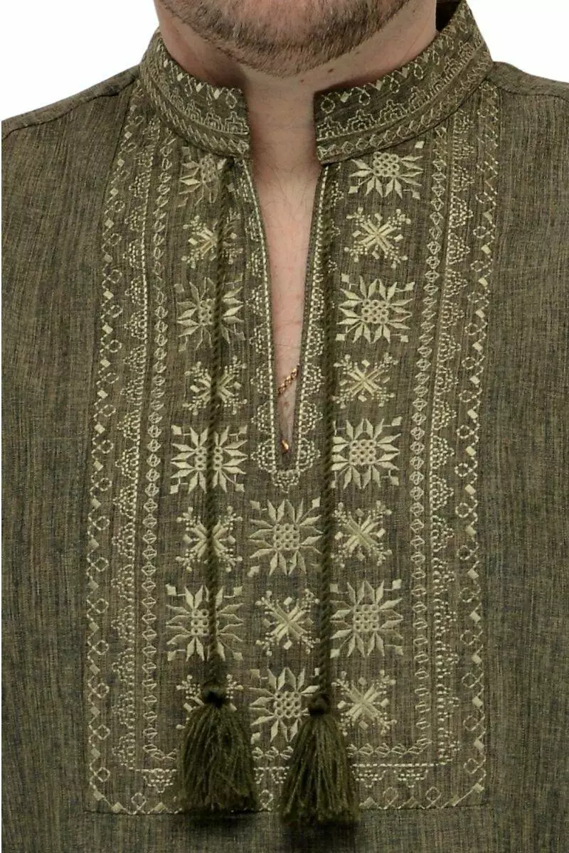 Представлена модель сорочки-вишиванки відрізняється стриманою вишивкою і модним сучасним забарвленням.