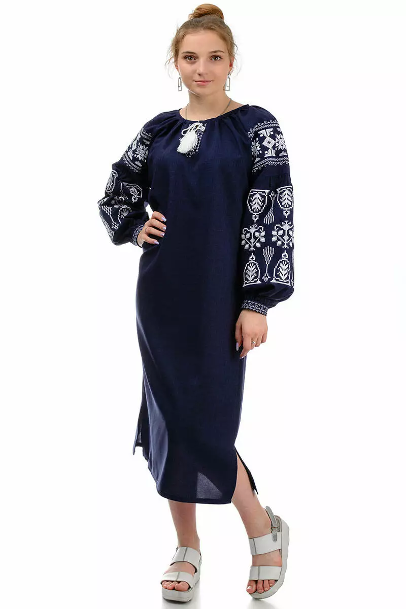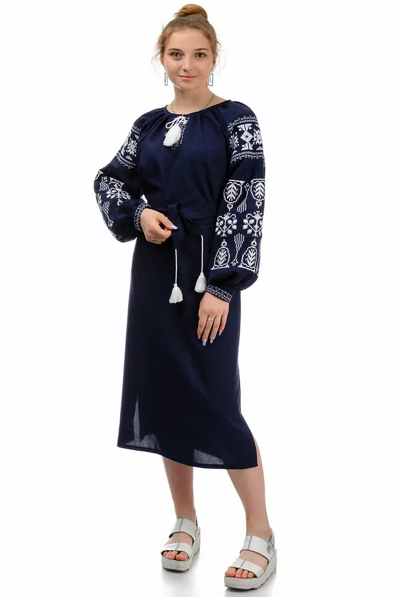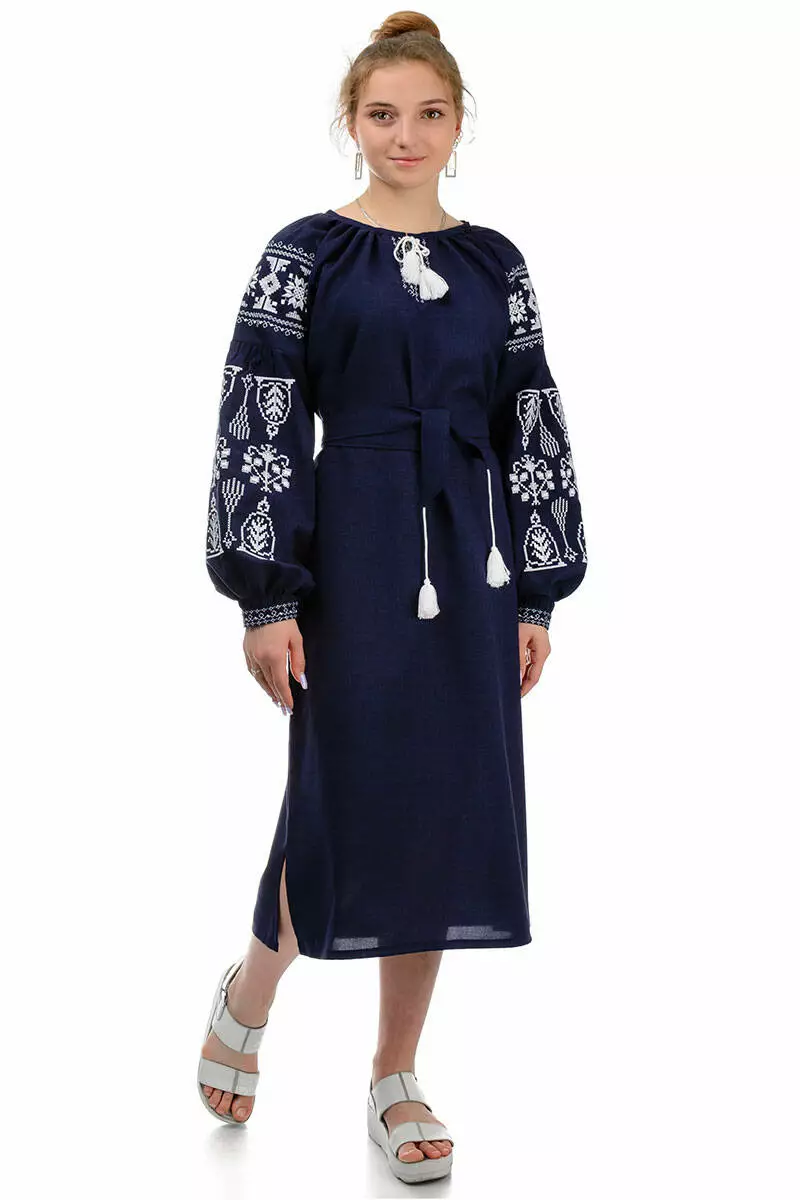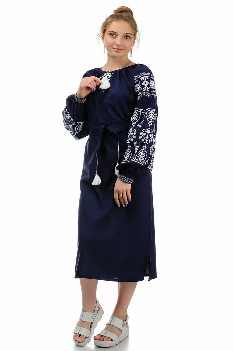 Сукня-вишиванка вироблена з якісних матеріалів. Тканина - льон-габардин щільна та приємна на дотик. Ошатні візерунки на рукавах і грудях вишиті машинним способом. Важливо, що навіть після багаторазового прання тканина і вишивка зберігають свої початкові кольори.